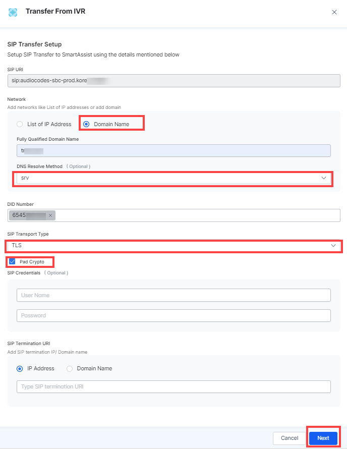 Step 4: Create a Connection from ZCC to Kore IVA - Transfer from IVR (SIP Transfer)¶