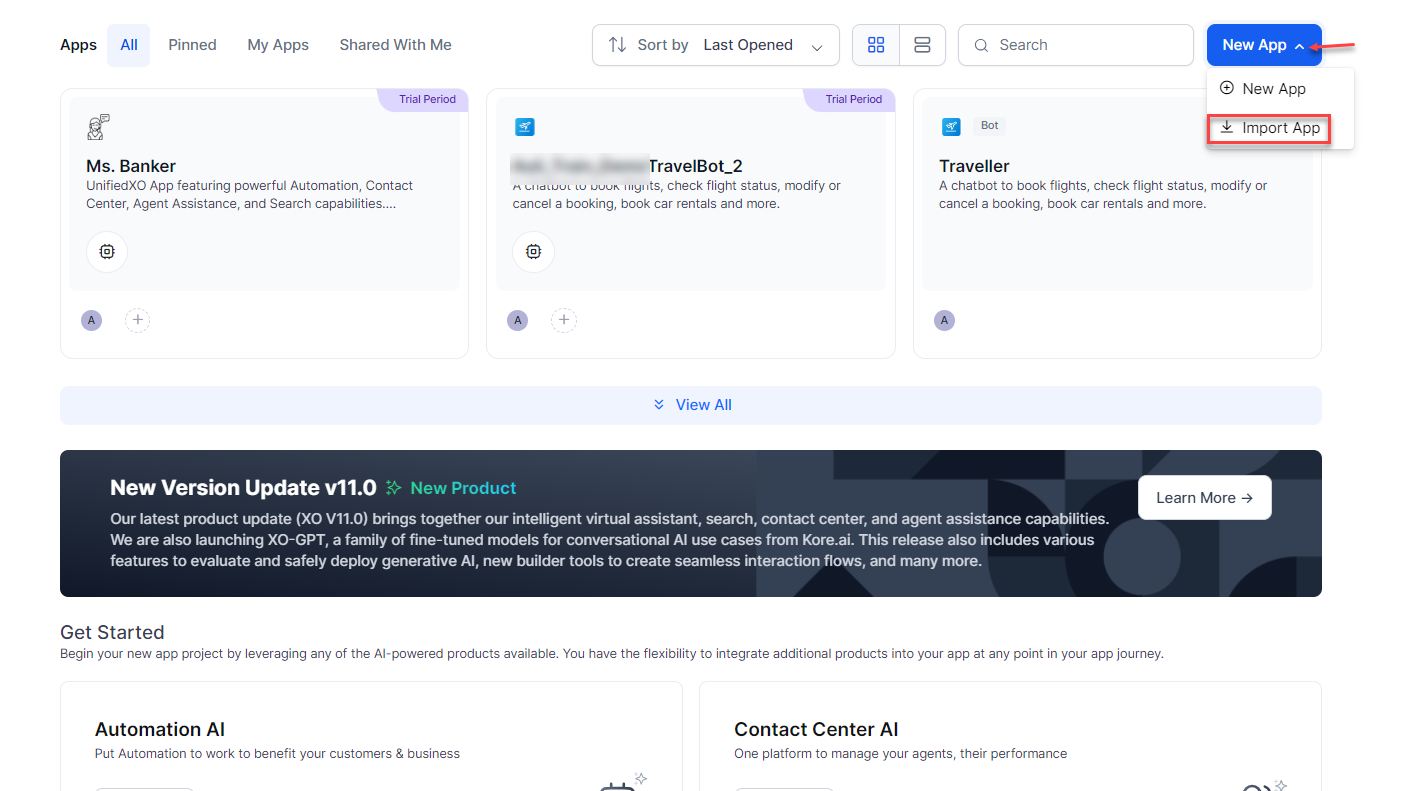 Bot imports are not supported. Only App imports are allowed. Follow the upgrade journey to upgrade your XO10 Bot to an XO11 App.