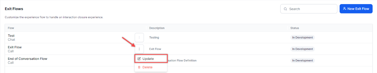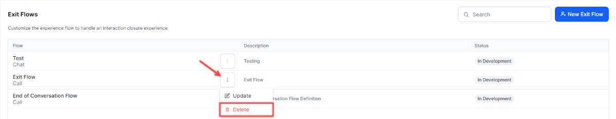 - Exit Flows: Used when a call disconnects, applicable to voice channels.