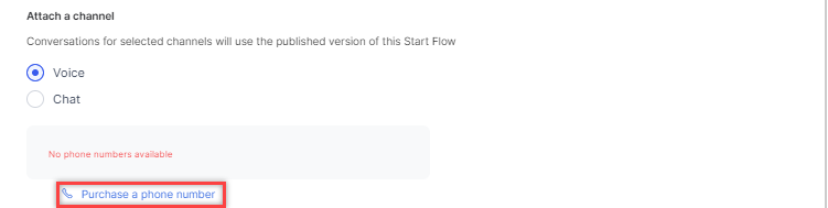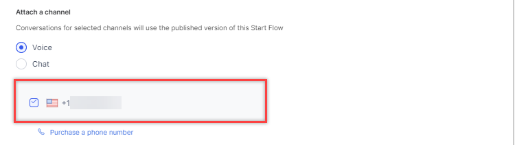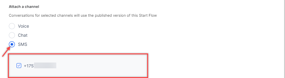 Selecting this option displays the list of phone numbers available within your account. Select a number to map to the start flow.