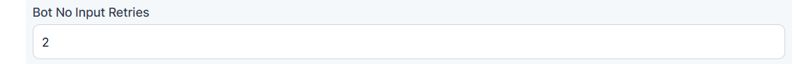 - Specifies the number of times to perform the no input actions, with a "Bot No Input Timeout" duration between each retry.
