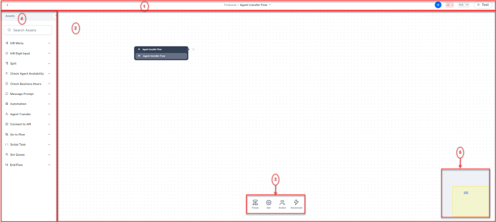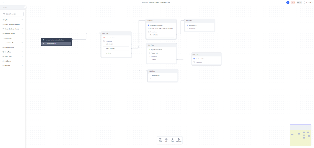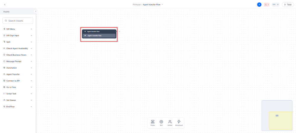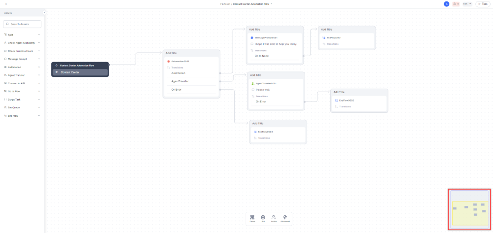 The Mini Map allows you to visualize the canvas area you're working on. It is beneficial for managing large flows.