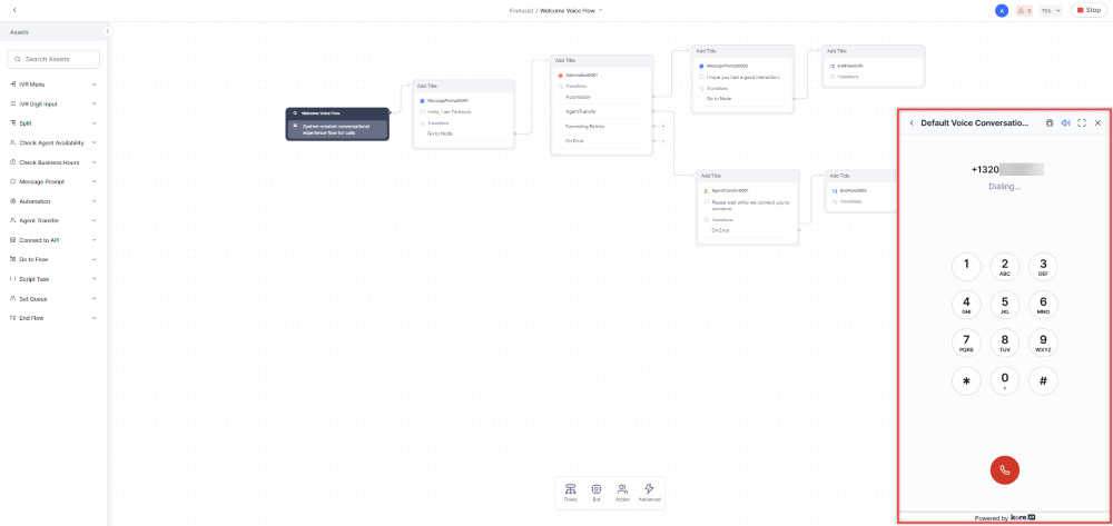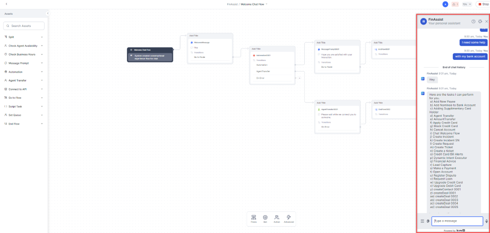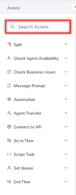 The index panel consists of all the nodes you can add on the canvas to build the flow. The search bar on the index panel allows you to search for a node. Learn more.