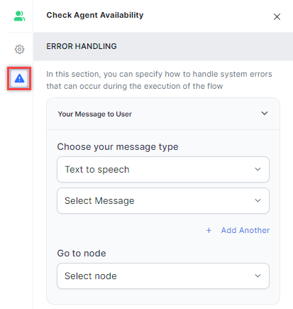- The failure path (If no agent is available): The flow is directed to the selected node from the current node if an available agent is not found, according to the criteria set above.