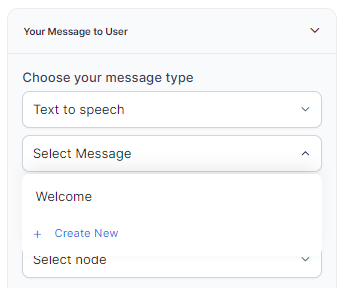 - Create a new prompt message to be played out for the Text to Speech message type by clicking + Create New. Enter a name for your message, and type its contents.