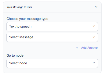 - Define multiple message types for the prompt message to be played to the customer by clicking + Add Another. In this case, one message will be randomly selected and played during runtime.