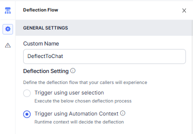 For Go to Node, select a node from the dropdown list. This node triggers once the call deflection occurs. For example, Automation.