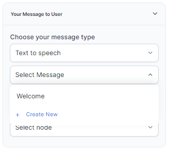 - Your Message to User: This message plays to the customer via the IVR. Select one of the following options from under Choose your message type: