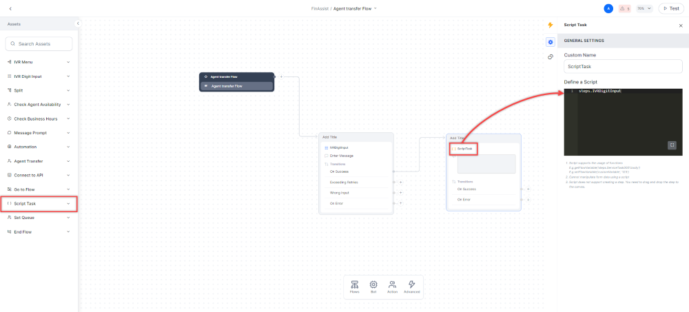 Once the caller listens to the IVR message, they must key in their input. The Contact Center AI receives this and stores it as a variable under a script task.