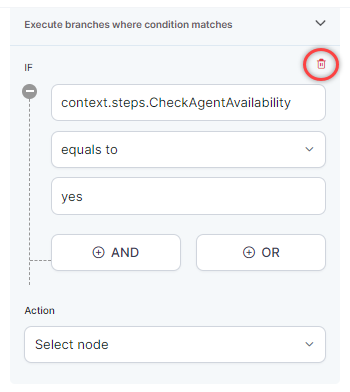 You can delete a condition by selecting Delete icon next to it.
