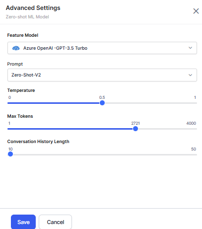 This feature help the ML Engine identify the relevant intents from user utterances based on semantic similarity. By identifying the logical intent during run time, this feature eliminates the need for training data. The Zero-shot ML model requires well-defined intents to work well. This training approach is well-suited for an AI Agent with relatively fewer intents and distinct use cases.