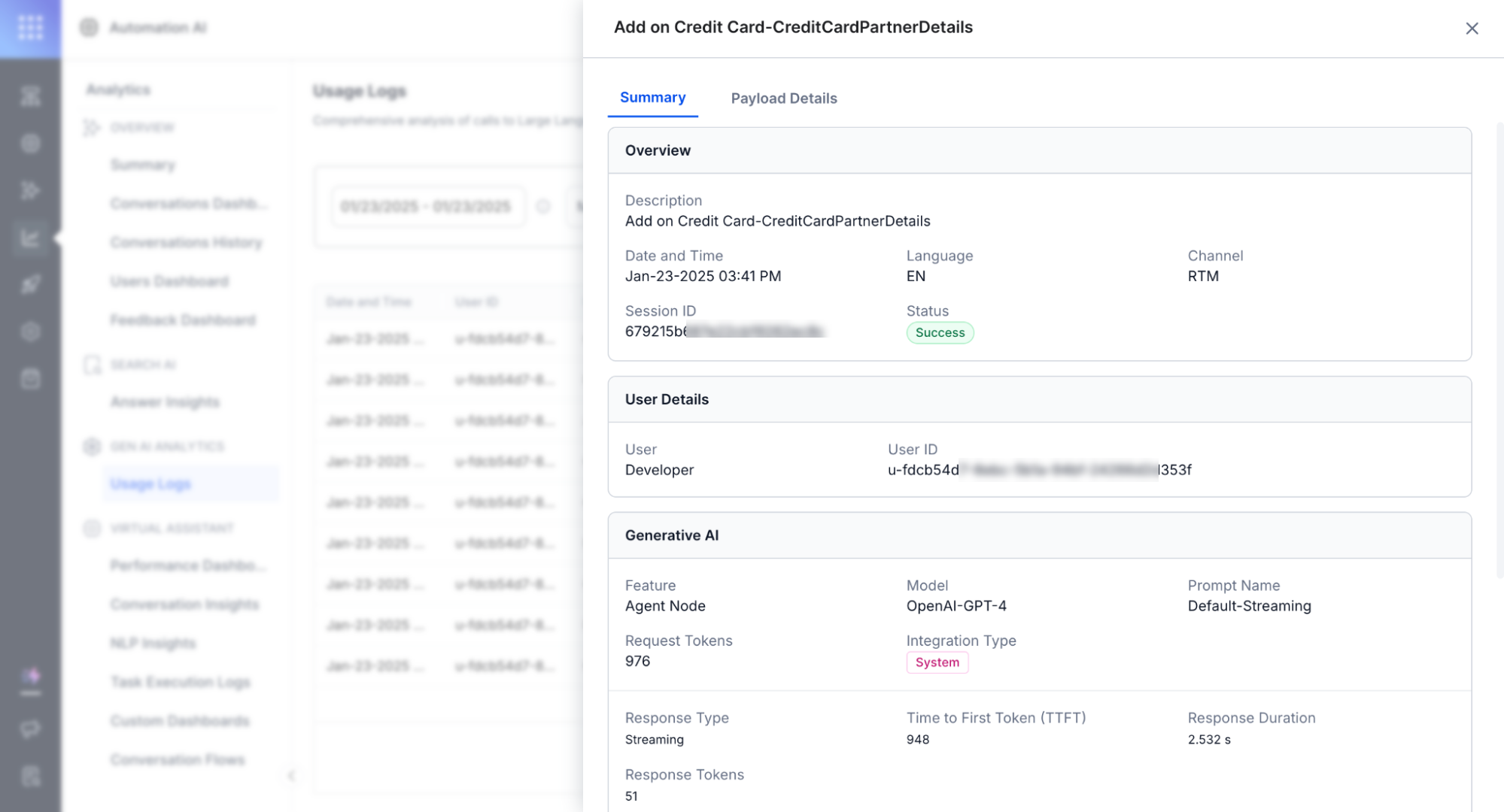 This detailed analytics data is available at the Usage Logs in the Platform.