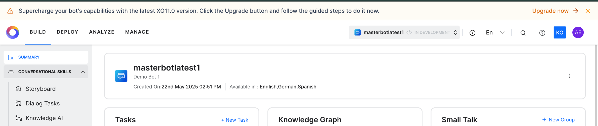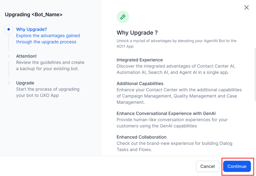 Upgrade Journey from Agent AI v10 to Agent AI XO v11¶