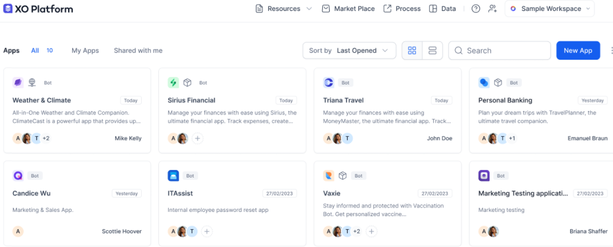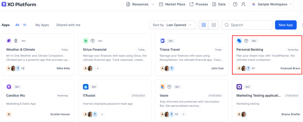 All apps (Agent AI and automation bots) are displayed. Click the Agent AI bot to upgrade to an App in XO v11.
