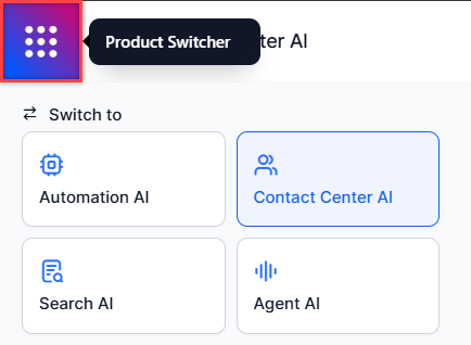 Access the modules on the XO v11 platform by selecting the Product Switcher at the top-left corner.