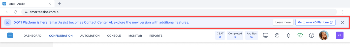 SmartAssist is nearing its end-of-life. All new Contact Center features will be developed exclusively on XO v11. Existing users must migrate to ensure uninterrupted service and continued feature access.