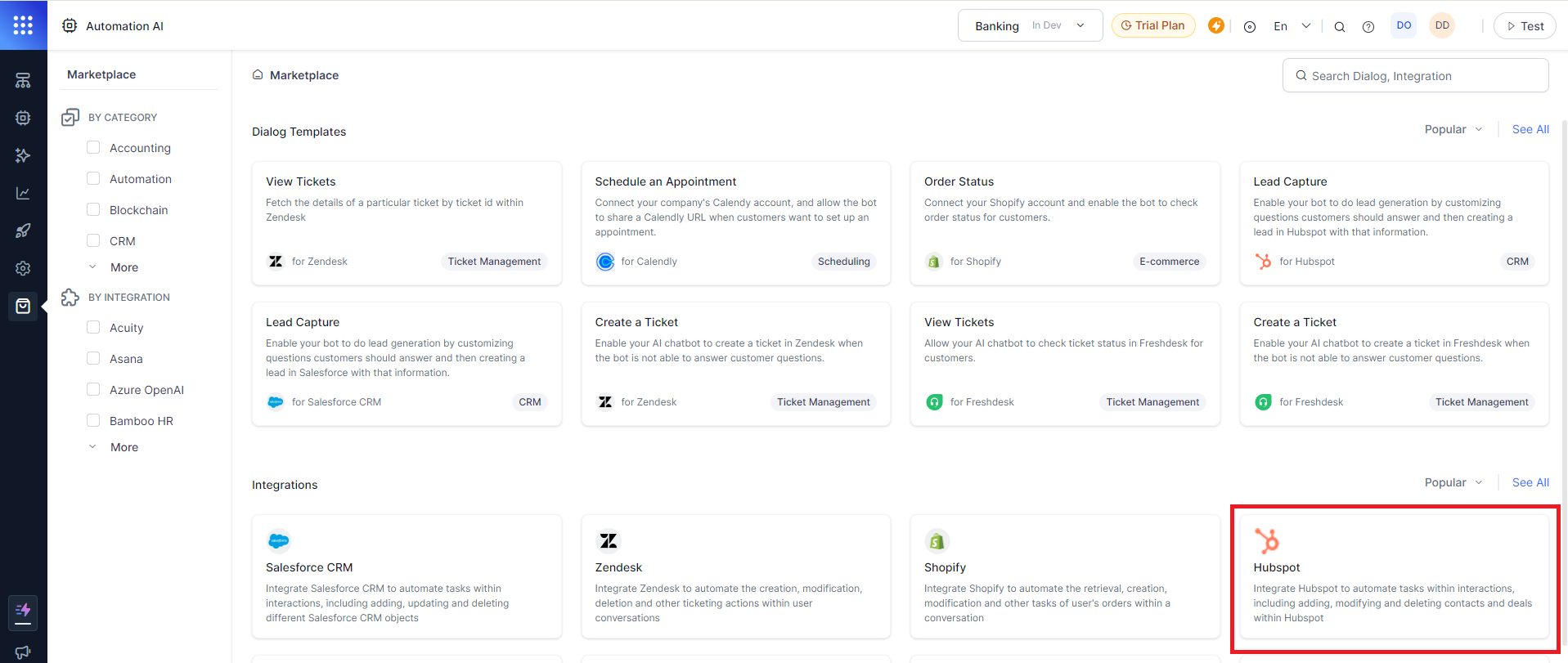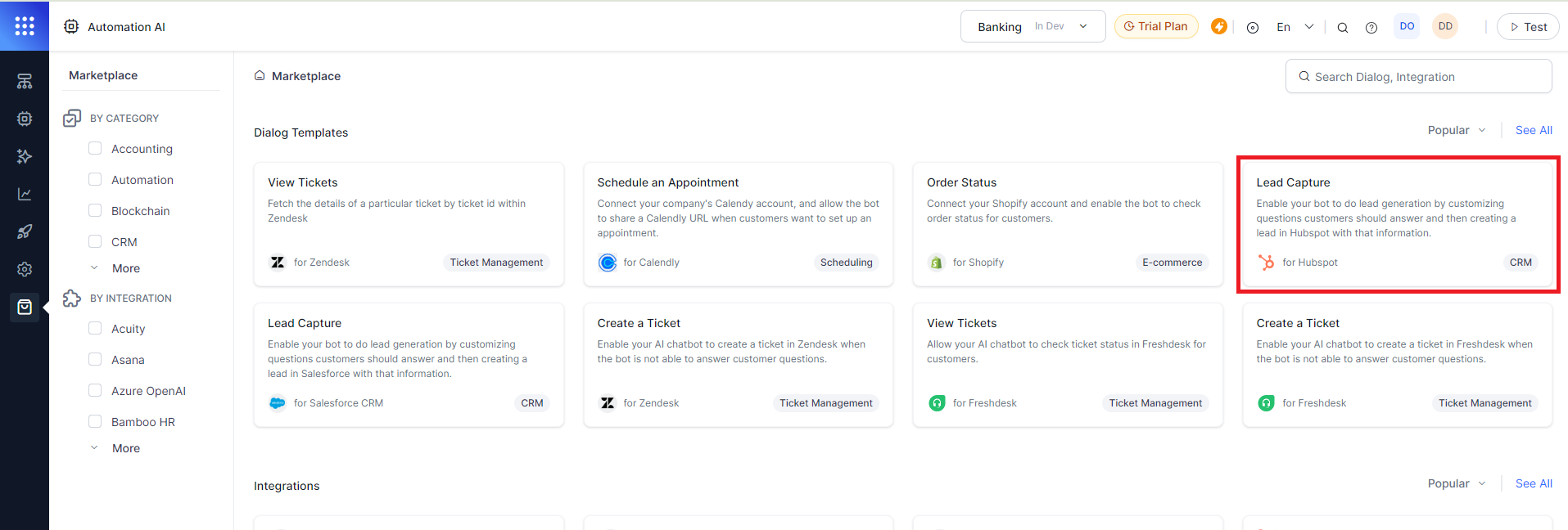 Go to the Marketplace and select Lead Capture for HubSpot CRM Dialog Template.