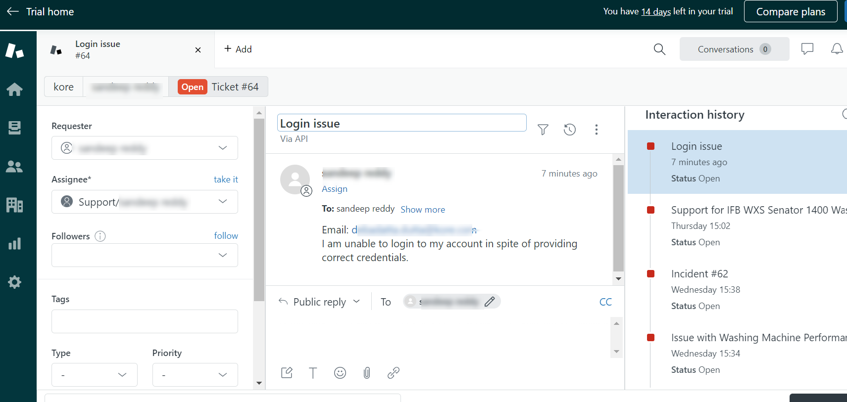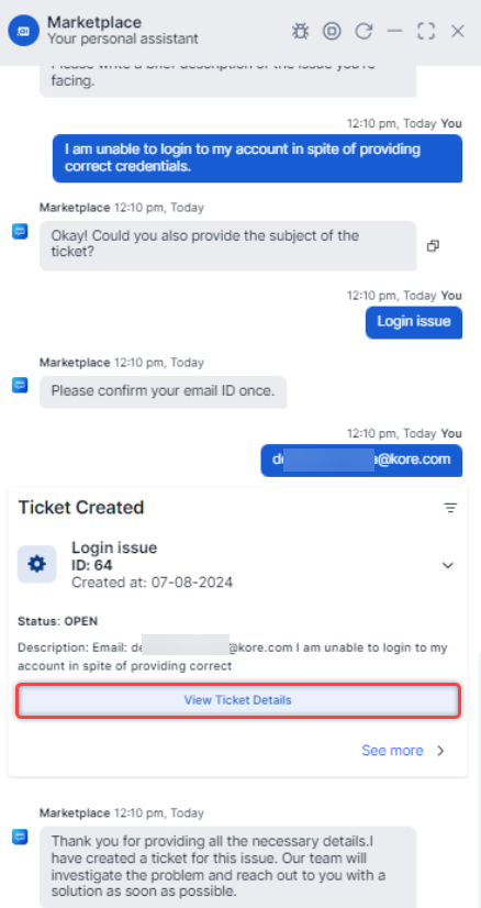 A new Ticket is created in Zendesk. To view the Ticket, click View Ticket Details on the app console. You will be redirected to Zendesk. Login to view the Ticket.