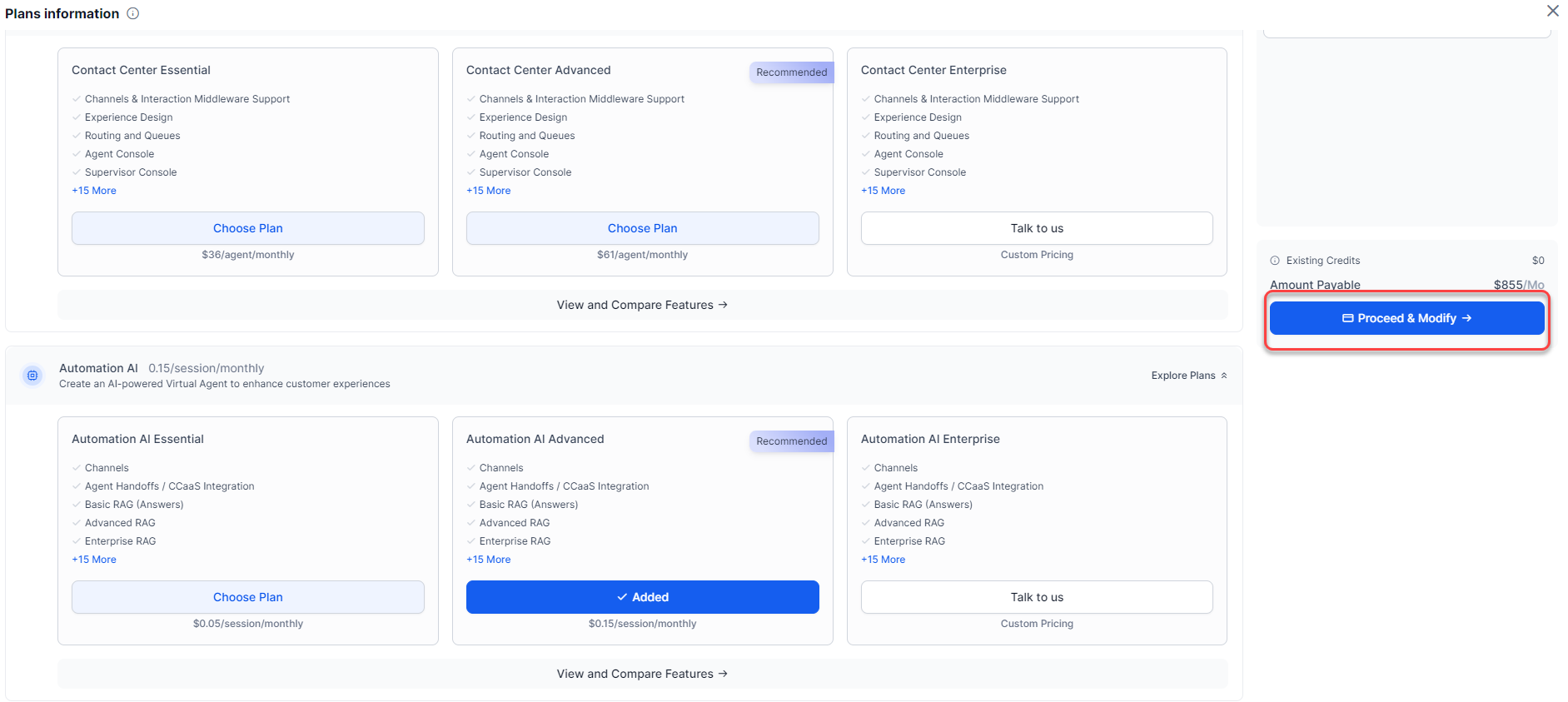 Search AI: This is included in Automation AI, and the same billing session is applied.