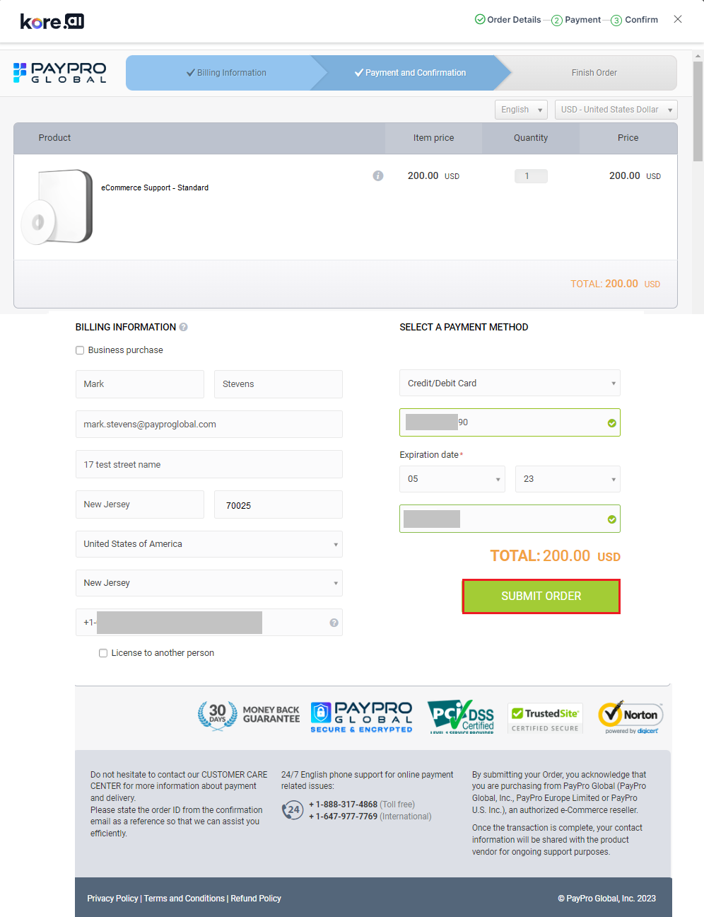 Enter the Billing Information, select a Payment Method, and enter the payment details.
