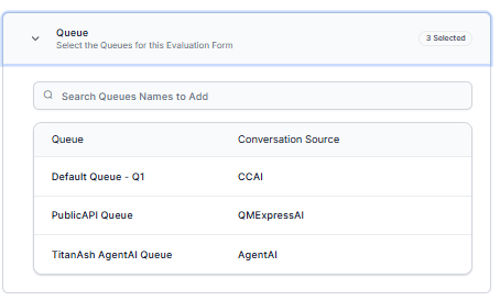 Evaluation Form: Choose a form that guides auditors in reviewing and assessing assigned interactions. The form also determines which queues appear in subsequent filters, as each form links to specific queues in the system configuration.