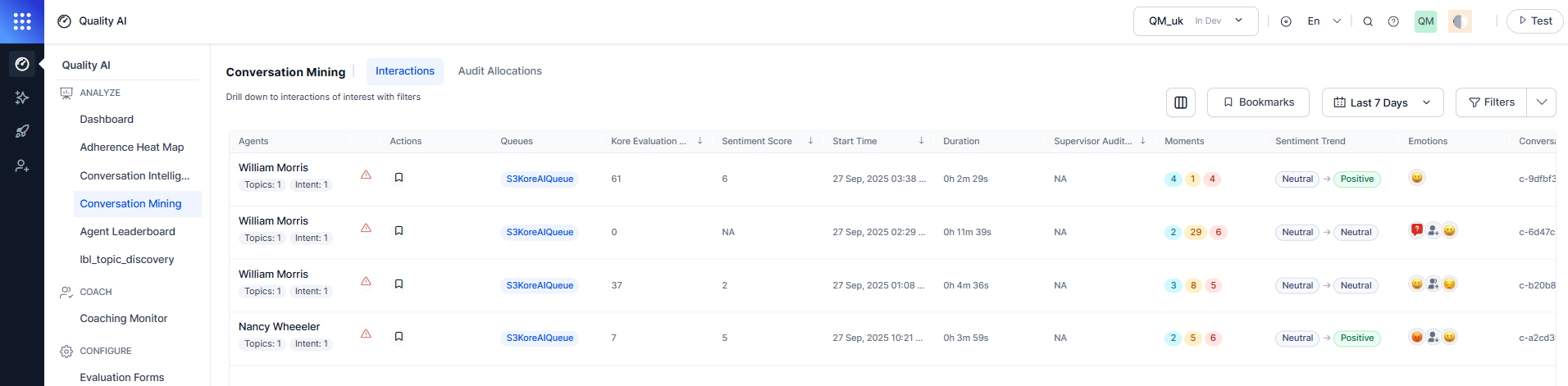 - All Conversations: Opens full Conversation Mining - Interactions view with pre-applied topic filters.