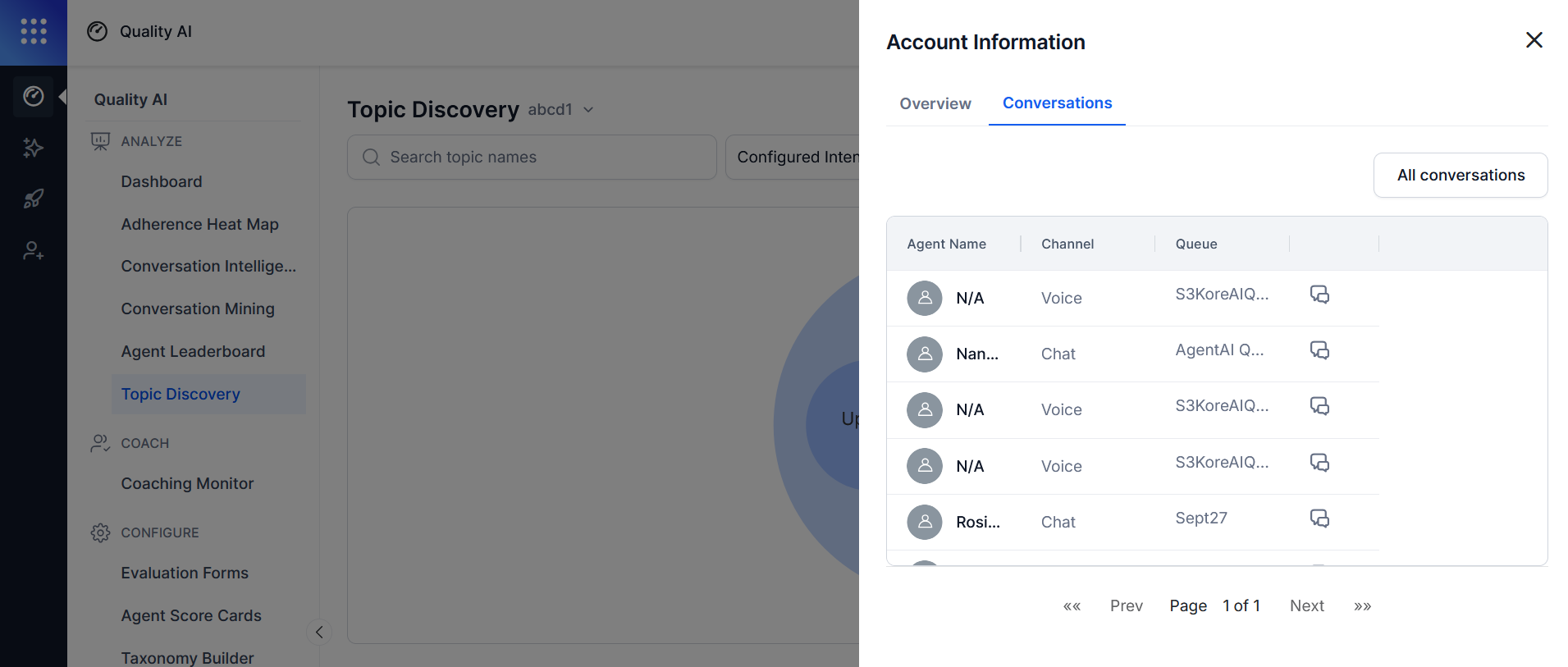 Navigate to Quality AI > ANALYZE > Topic Discovery