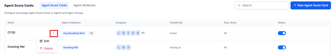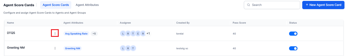 Select any of the agent scorecards, and select the vertical ellipsis button.