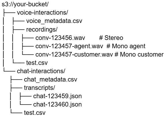 The AWS S3 Connector allows you to ingest conversation recordings and chatscripts/transcripts from a configured S3 folder periodically with a customizable schedule into Quality AI Express, allowing you to use the tool with third-party Contact Center as a Service (CCaaS) solutions.