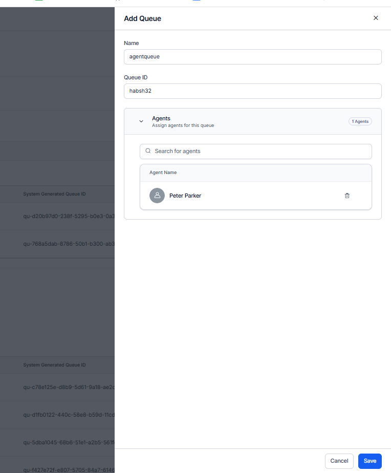 Add Queue: Add new queues and assign agents.