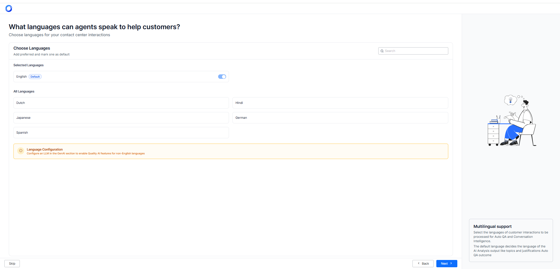 To enable Quality AI features for non-English languages, configure an LLM in the GenAI section.