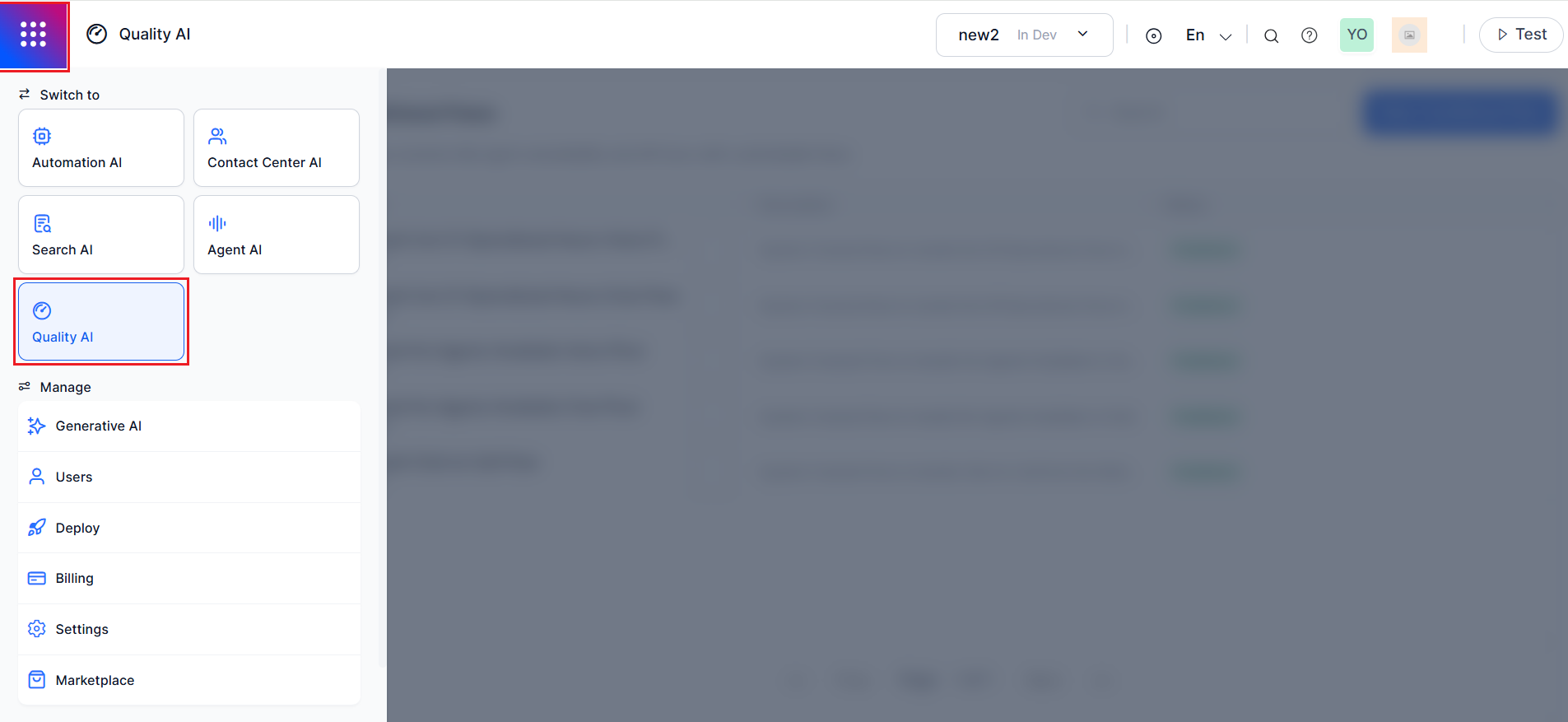 You can access Quality AI as a standalone product from the app switcher. You can change or upgrade licenses and conversation sources at any time.