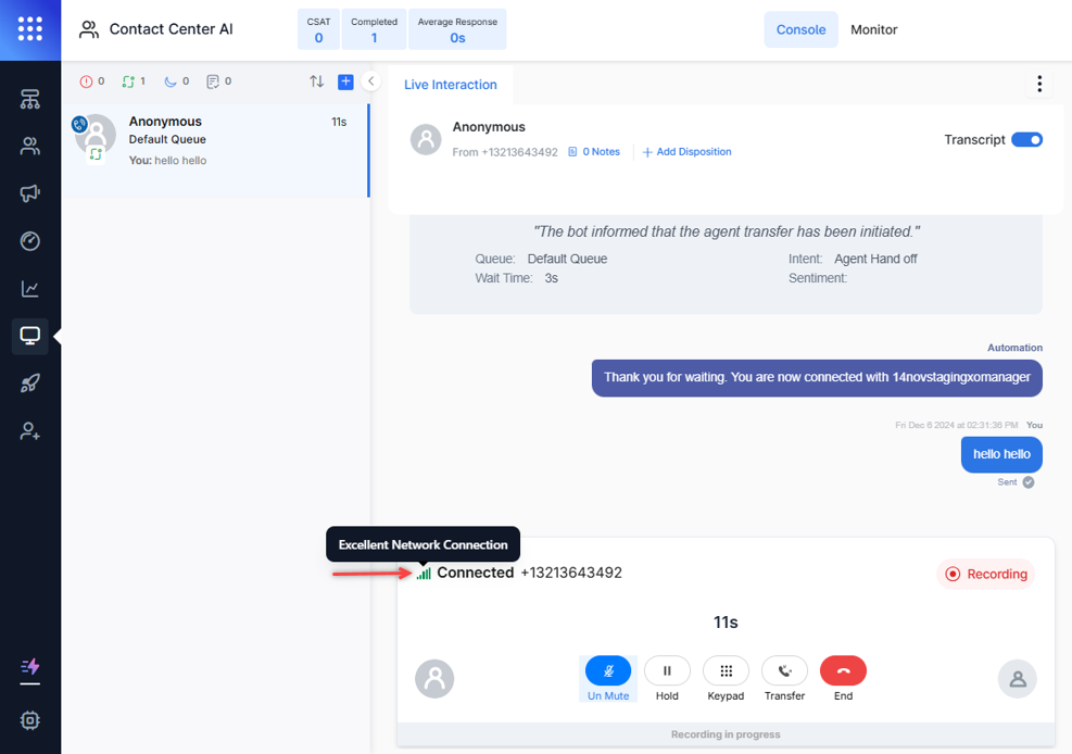 The system now records accurate call-termination status during agent–customer interactions, including CSAT. Calls are marked as User Hangup or Agent Hangup, preventing incorrect classification as Bot Hangup. Learn more .