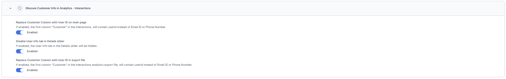 Added a 'Show customer and agent names in transcript' toggle under Obscure customer info. When enabled, transcript exports include a new NameOfUser column that displays the agent name, customer name, email address, or phone number—based on availability. This update improves transcript clarity and supports compliance reviews and audits. Learn more