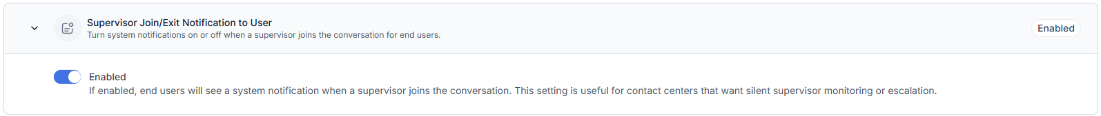 Conversations now use separate queue wait time controls before and after agent transfer. On the first entry, the initial wait time applies. After a transfer, a dedicated post-transfer timer activates and resets with each subsequent transfer. Learn more .