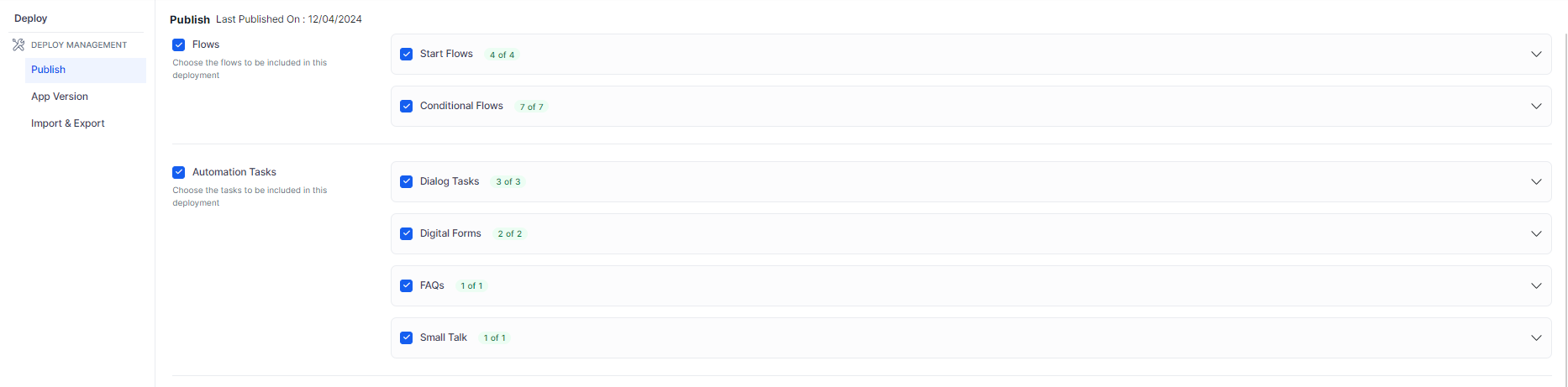 Centralized Publish Module: To ensure consistency, simplify workflow management, and centralize management tasks, we've introduced a centralized Publish Module. All flows can be published from this module.