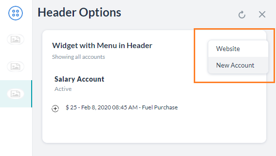Shows a dropdown menu in the header option. The menu can be placed for any message template. There are two types of menu items: