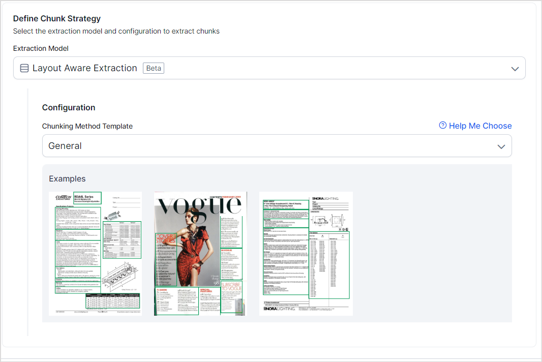 Extraction Model: Select the extraction model from the drop-down menu. The extraction model defines the technique applied to break down large pieces of textual information into manageable chunks. We currently support the following extraction models.
