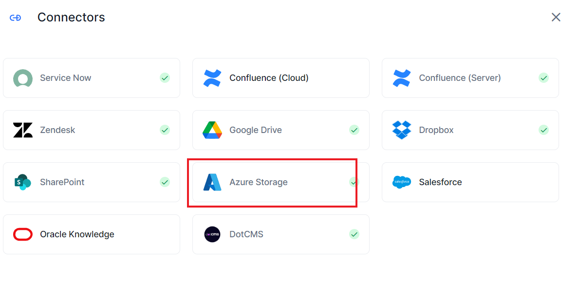 This step allows you to configure the Azure Storage account in SearchAI and select the set of containers from which the content will be ingested in the Search AI application.