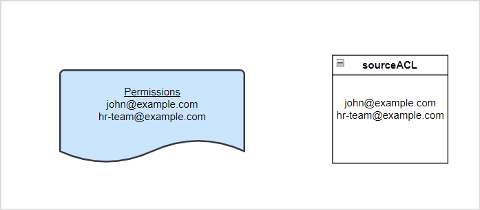Similarly, if the files are accessible to a user and a user group in Google Drive, the corresponding content will have the information as shown below, where hr-team@example.com is the permission entity created corresponding to the group.