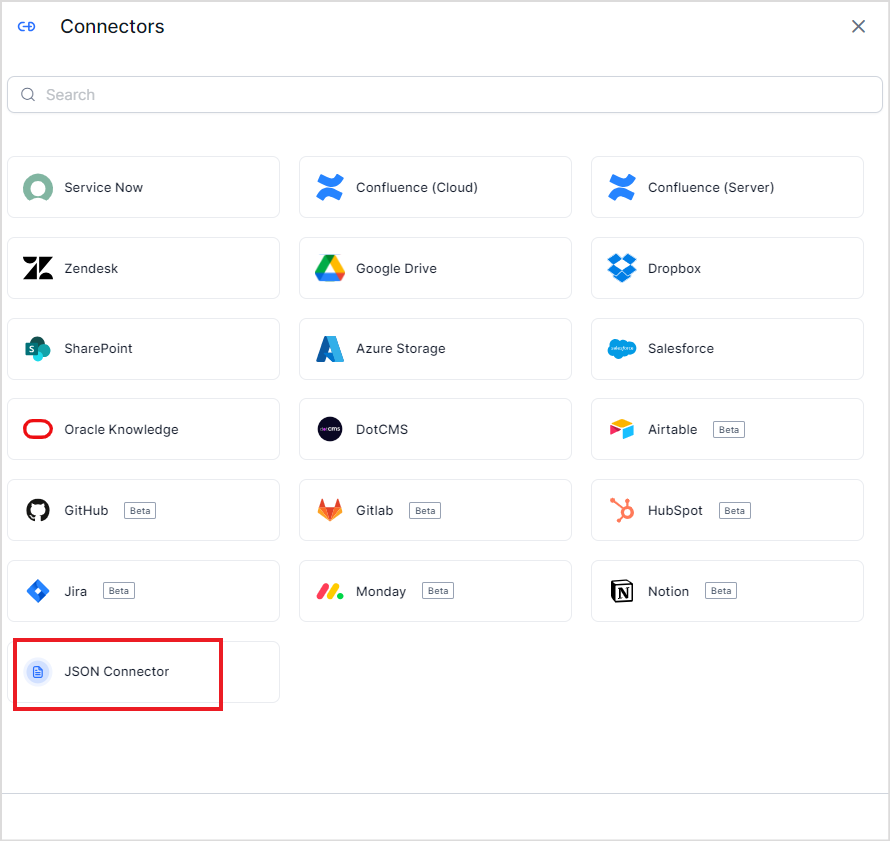 JSON Connector enables the ingestion of chunked content directly into the SearchAI application. This content is immediately added to the indexed content, ensuring seamless integration and efficient data retrieval within SearchAI. This gives the users the flexibility to ingest any type of data to the application by creating structured data from it in a given format.