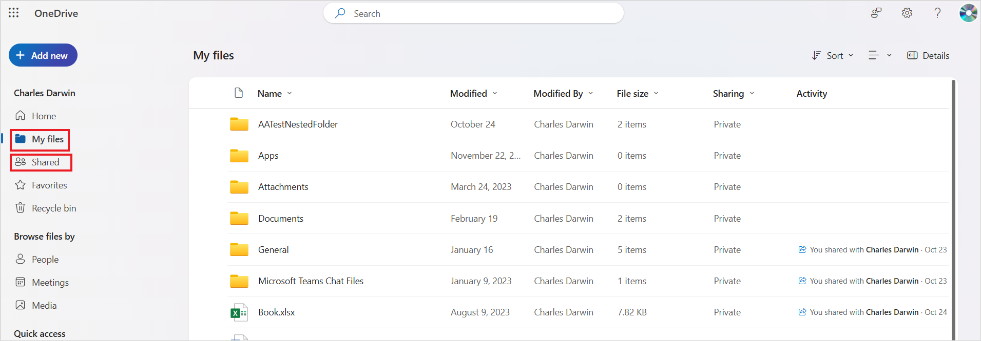 All supported files under My files and Shared files are ingested into SearchAI. Content inside folders is also ingested.