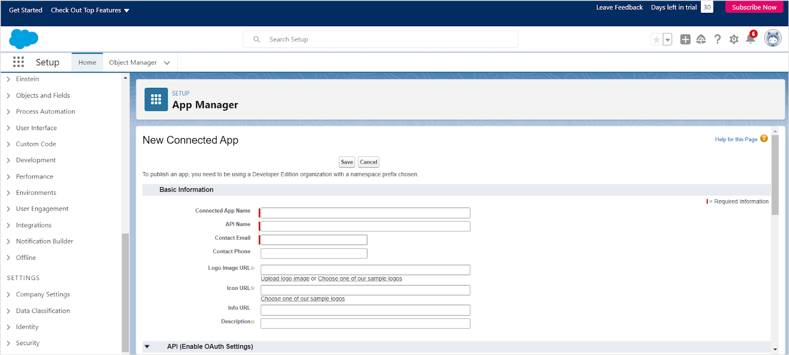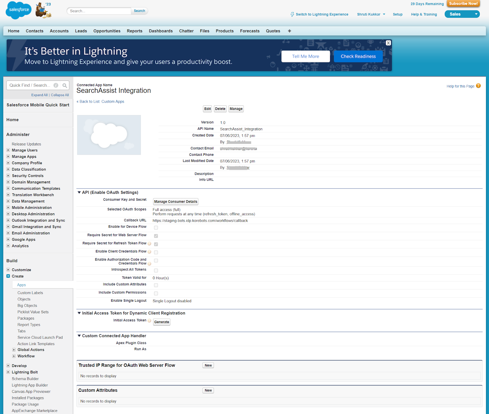 Note that currently, Search AI doesn't support the PKCE Salesforce feature; hence disable the field ‘Require Proof Key for Code Exchange (PKCE).