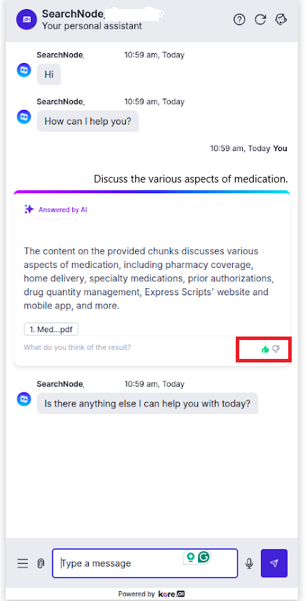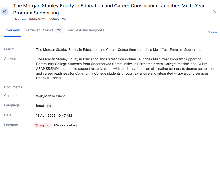 When a user interacts with a response by giving it a thumbs up or down through the SDK or via the public APIs, the feedback is recorded and associated with that specific answer.