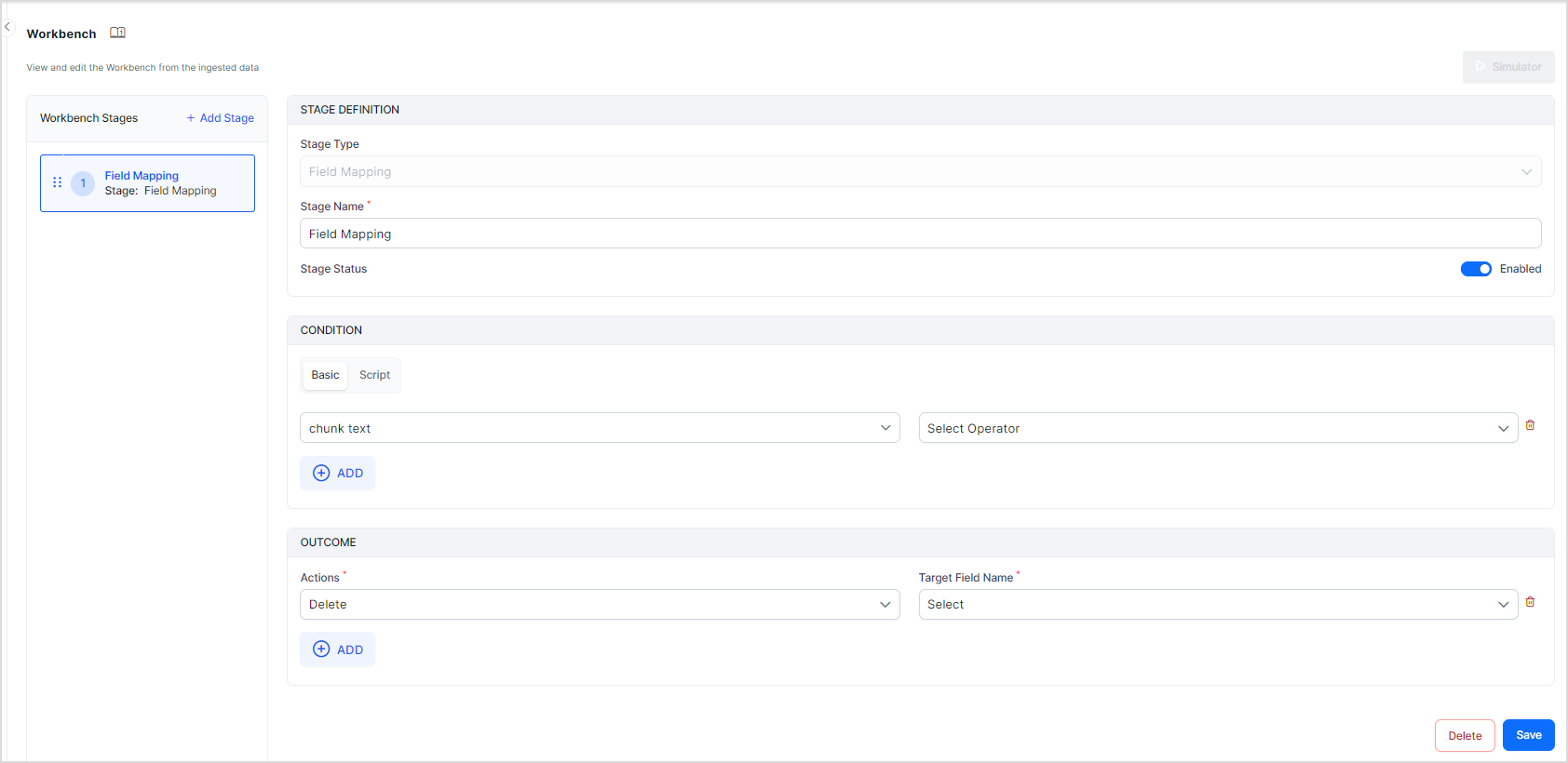- Delete - Deletes the target field for the chunk.