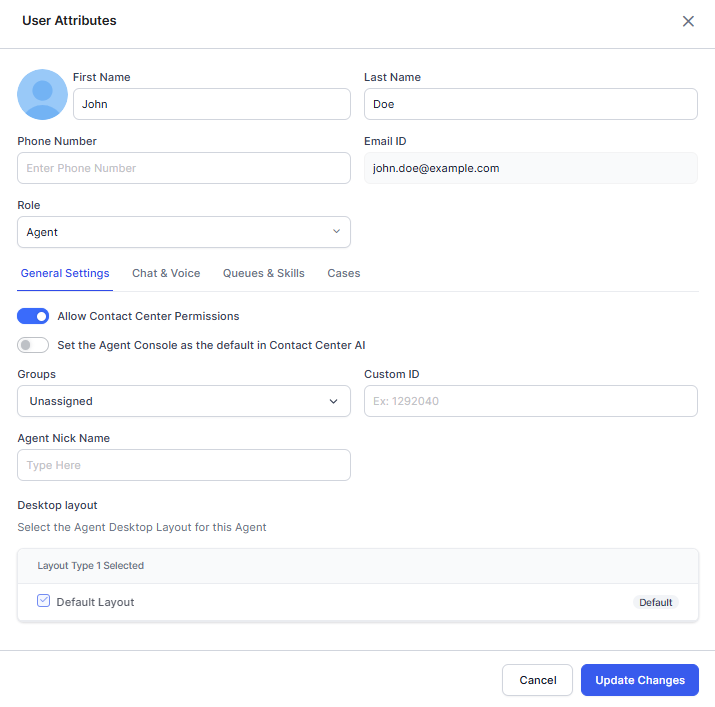 In the General Settings section, You can enable the Allow Contact Center Permissions toggle to set the following: