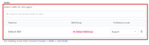 - You can remove a skill by clicking the Delete (bin) button next to it.