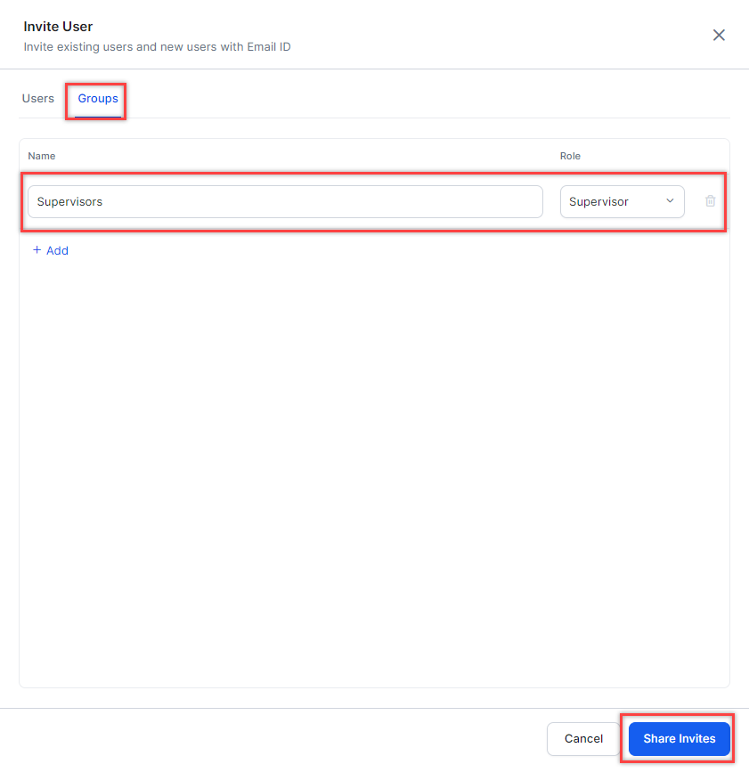- Name: Enter the name of the group you want to add. Refer to Create a Group.