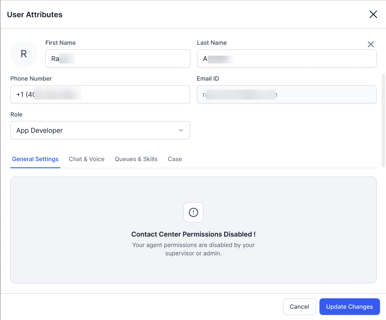 - Edit the user’s first, last names, email ID, role, and phone number.